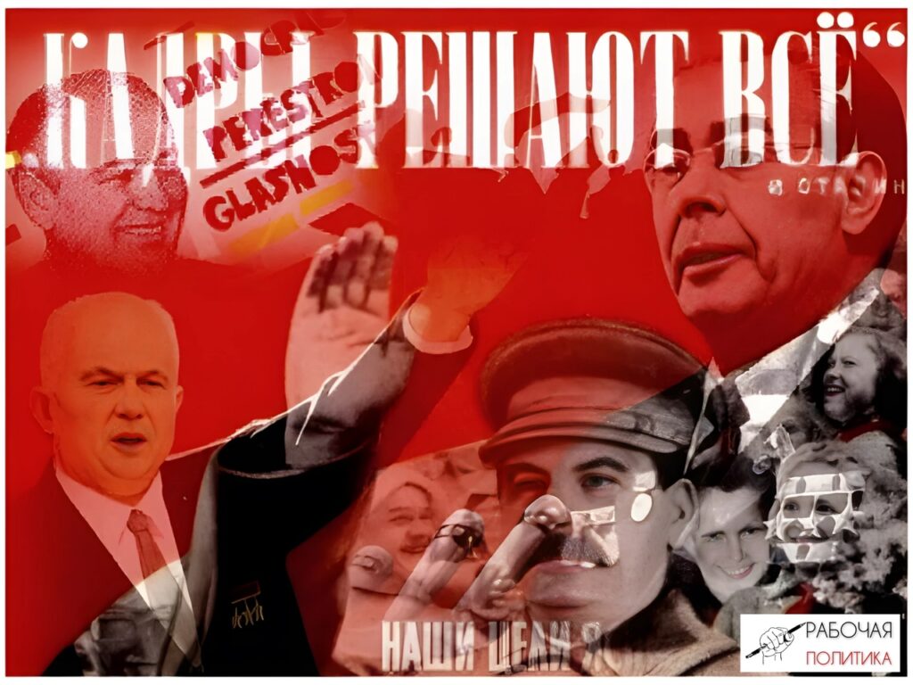 4 мая 1935 года на выпуске академиков Красной Армии Сталин произнёс свою знаменитую фразу «кадры решают всё», ставшую квинтэссенцией парадигмы бюрократического «коммунизма». В противоречии с мнением Карла Маркса, считавшего, что освобождение рабочего класса может быть завоевано только самим рабочим классом, российские коммунисты выдвинули концепцию, что только партия революционеров, кадровая партия должна представлять классовые интересы пролетариата, являться главным, если не единственным инструментом борьбы против капитала и построения социализма, «вождем» трудящихся масс на пути к новому обществу. Политика привлечения к управлению «поголовно всех» рабочих, которую Ленин теоретически предлагал накануне революции, на практике после прихода большевиков к власти свелась исключительно к «кадровой политике».